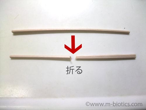 ↑それぞれ割って、一本ずつを真ん中あたりでバキッと折って……。