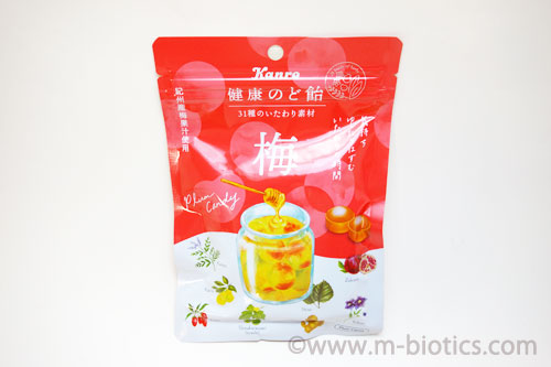 上記二種で「カンロ健康のど飴」シリーズは打ち止めでも良かったのですが、スーパーの棚にはあともう一種、「梅」というのがあり、どうせなら三種全部制覇してみようと思って買ってみました!↓