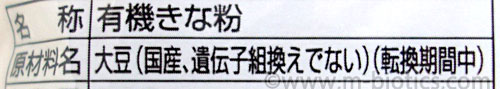 ↑原材料はこちら。国産有機大豆100%です! 「有機きな粉」というと大豆が外国産のこともままあるので、国産というのが素晴らしい。